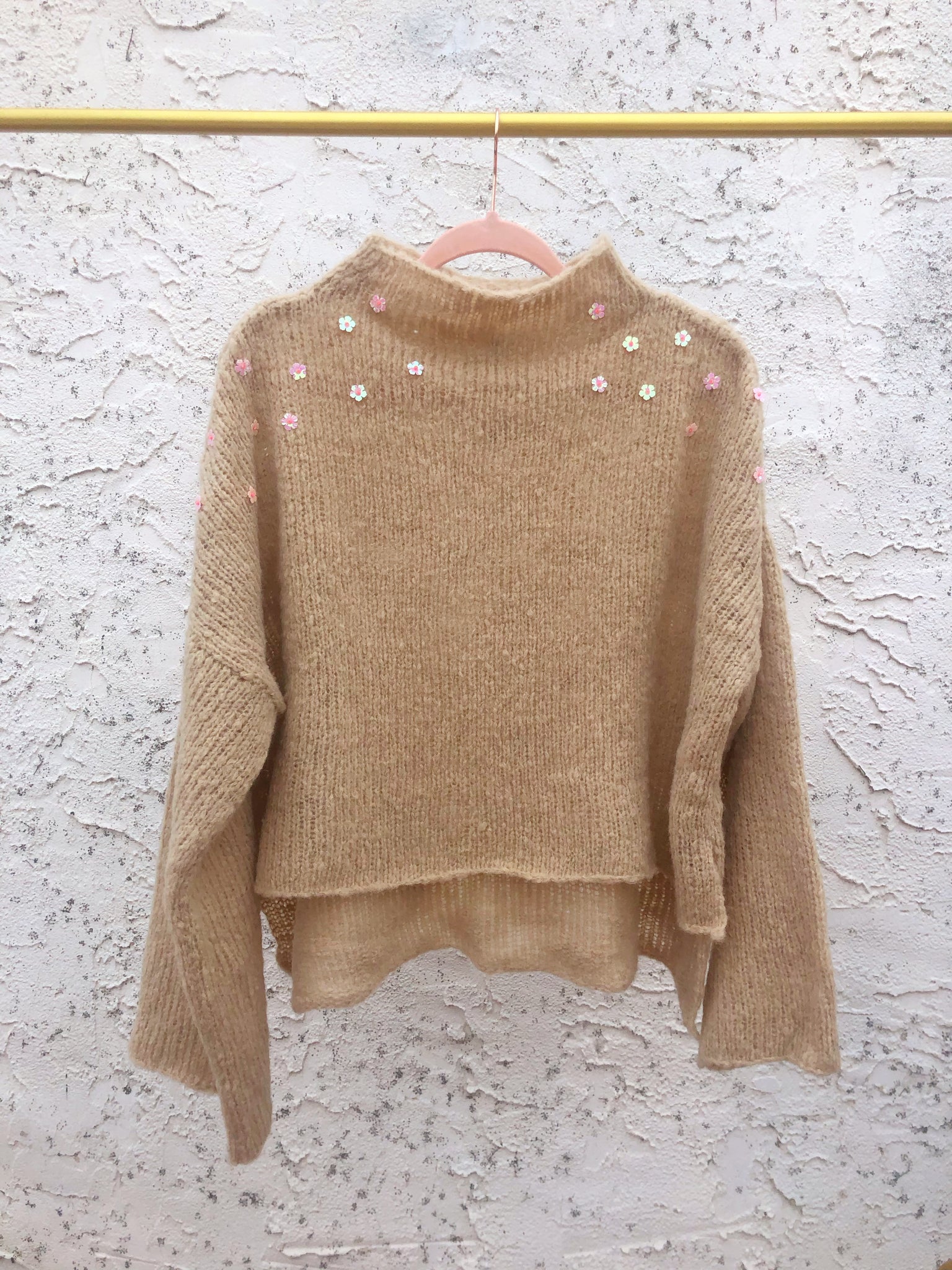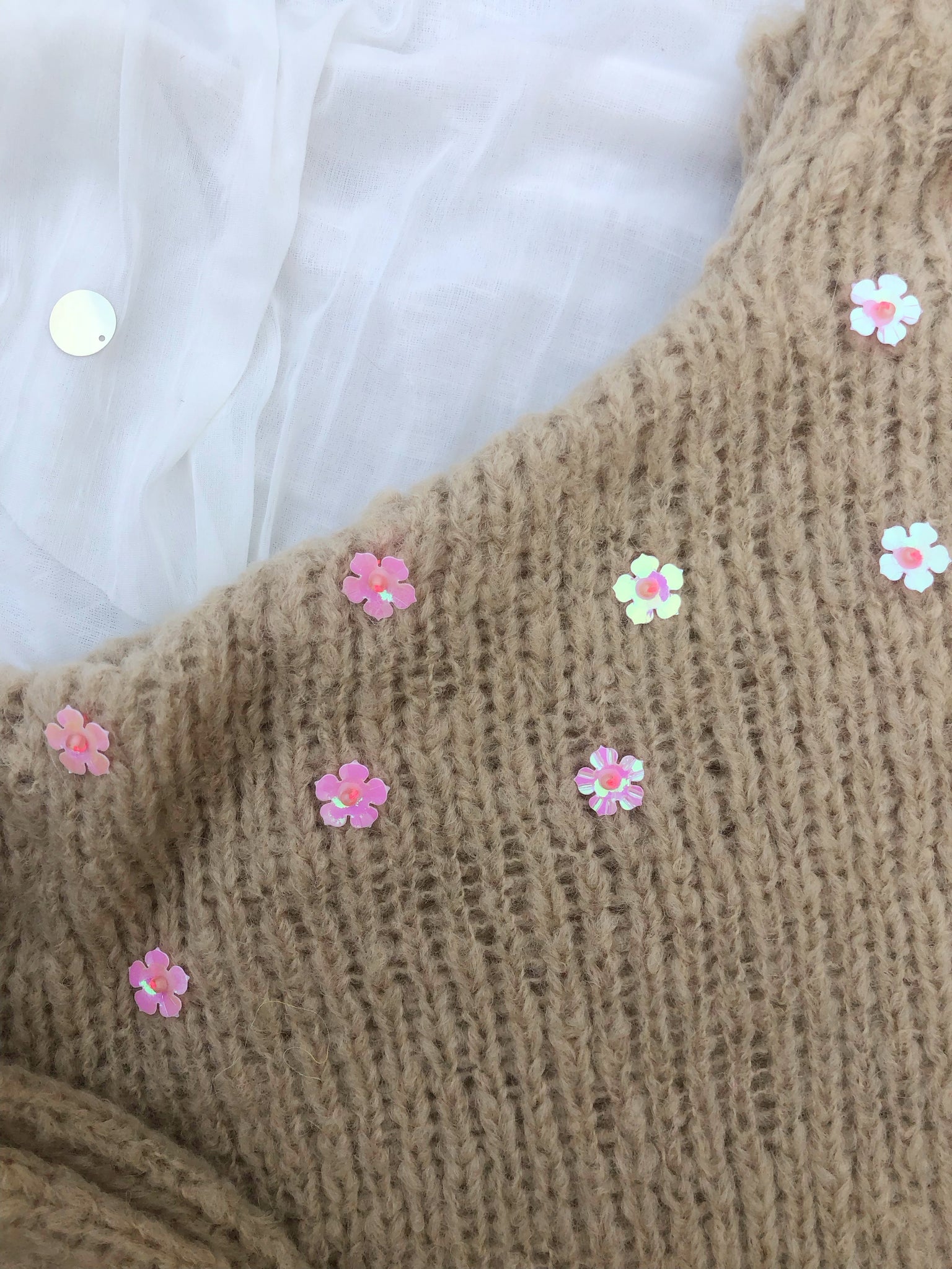 Alpaca blend, sequins and glass beads